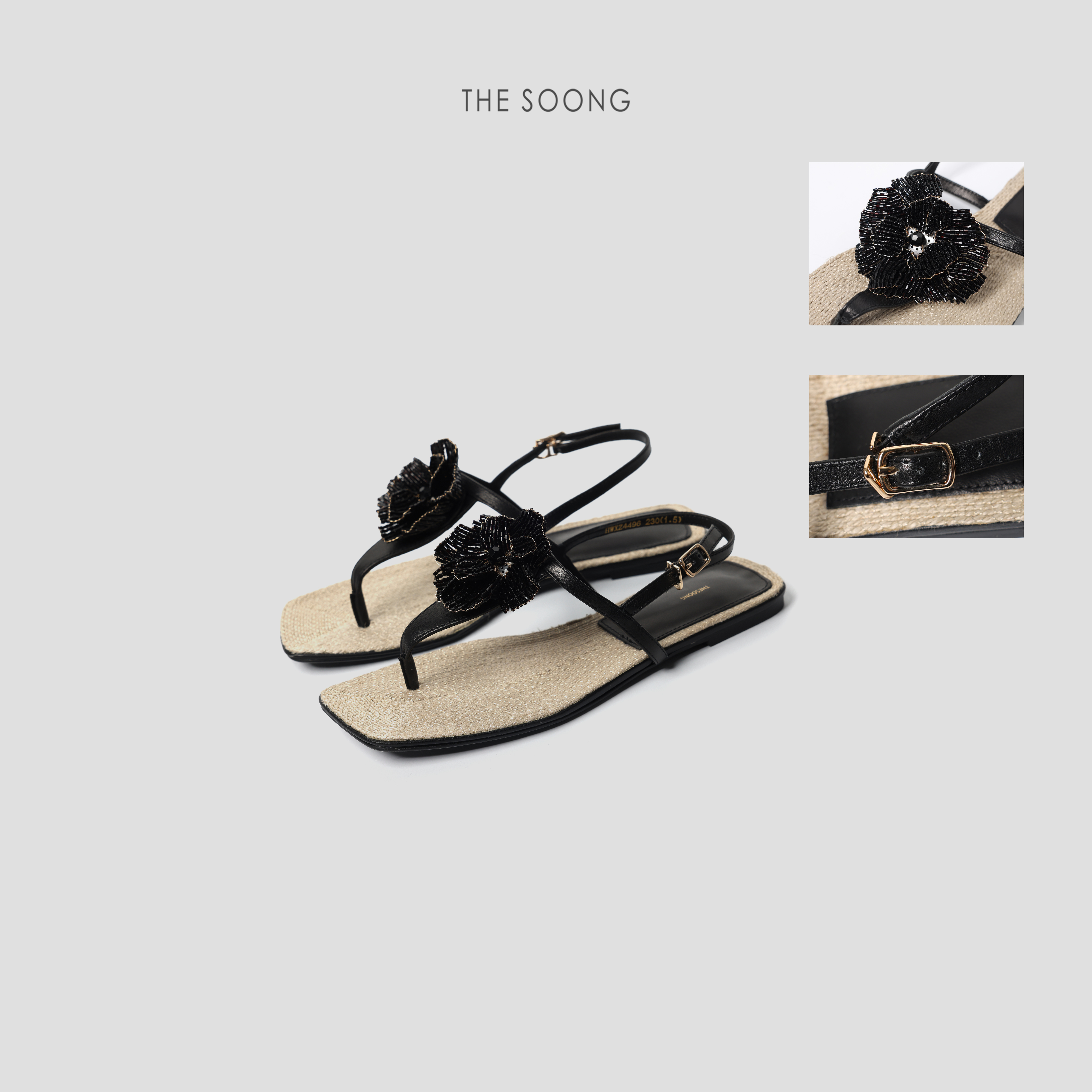 THESOONG 女 精致手工拼接紫荆花瓣超纤羊皮麻绳大底人字罗马凉鞋