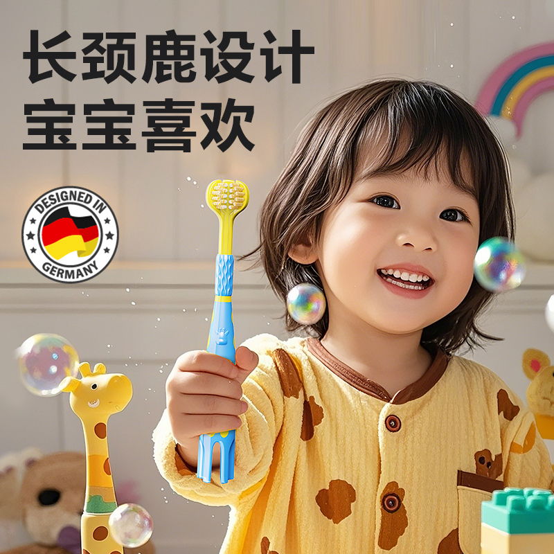 宝儿德儿童三面牙刷长颈鹿清洁口腔专用软毛牙刷3 12岁以上2支装