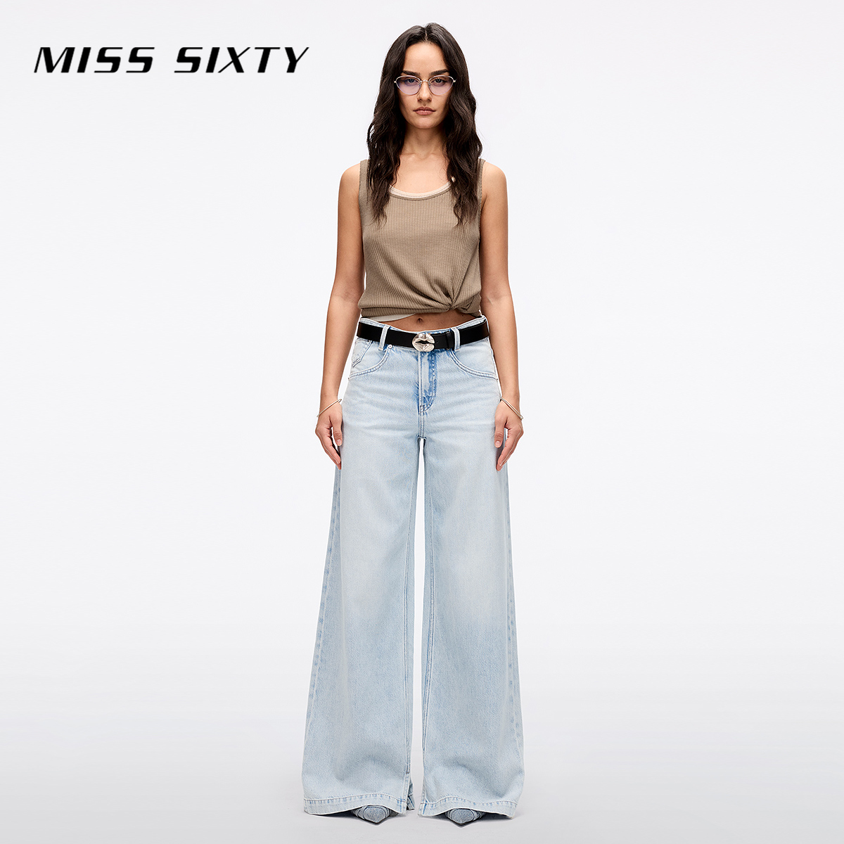 博主推荐 慵懒阔腿长裤 HM女装 通勤高腰水洗裤 1045459 牛仔裤