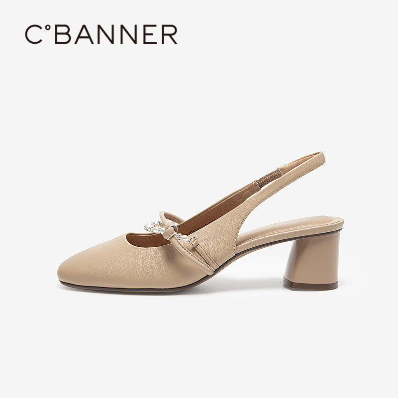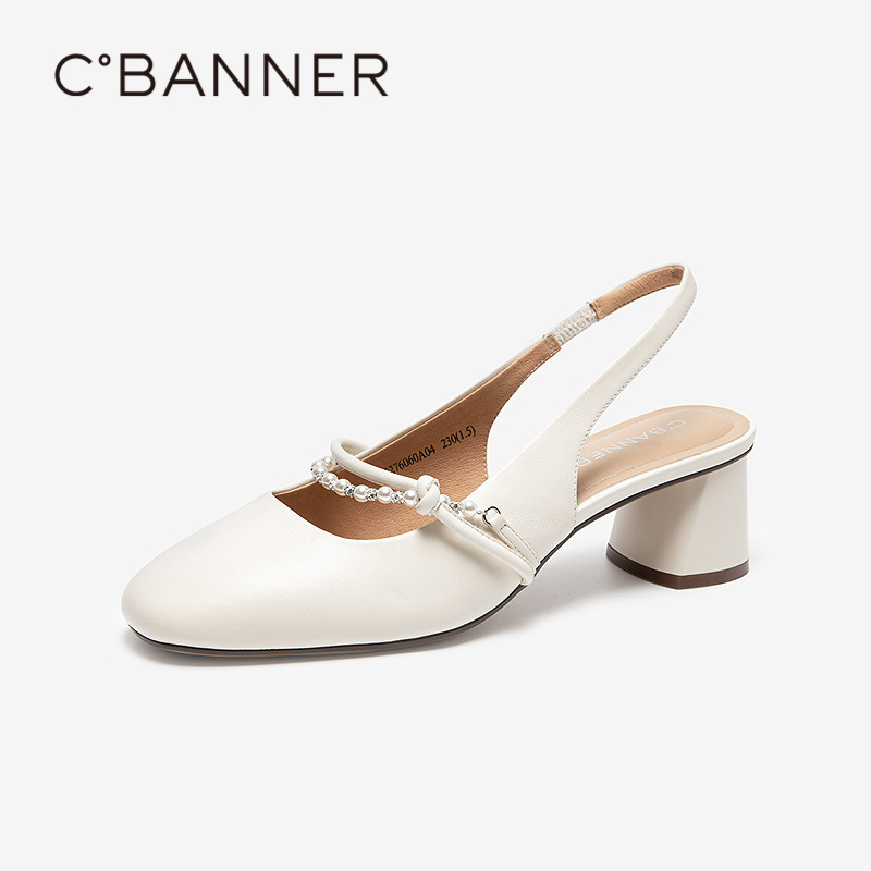 凉鞋 千百度珍珠带玛丽珍凉鞋 中跟真皮包头后空时装 新款 女2025夏季