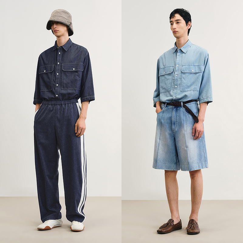 2025夏新品 速写男装 牛仔衬衫 七分袖 潮9P5212510 时尚 商场同款