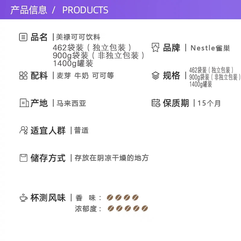雀巢美禄特浓可可粉可可麦芽冲饮巧克力味饮品多种包装 固体饮料