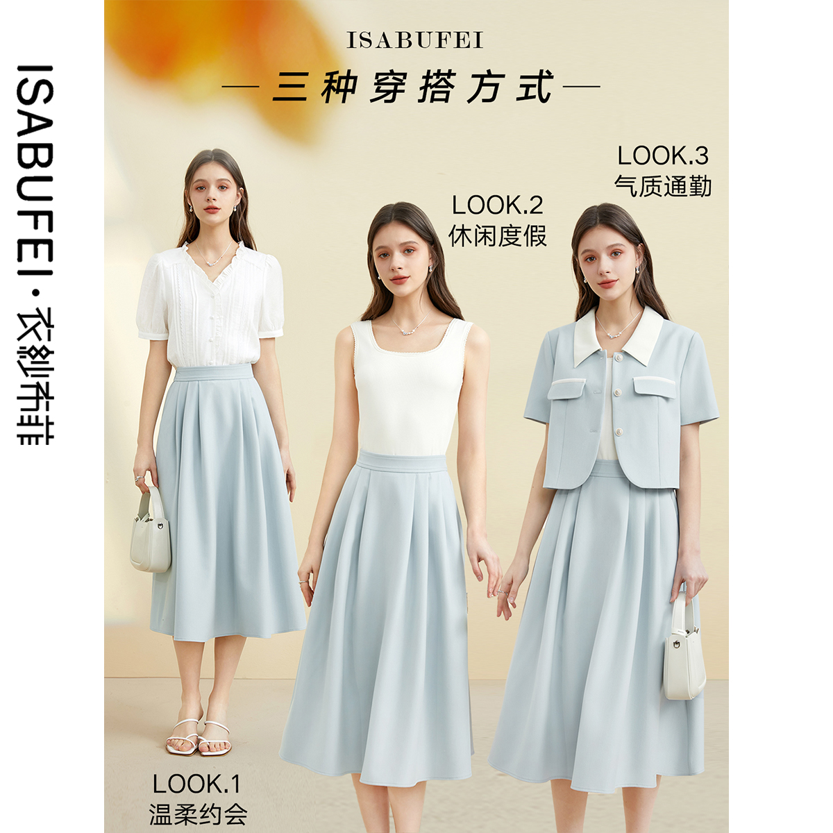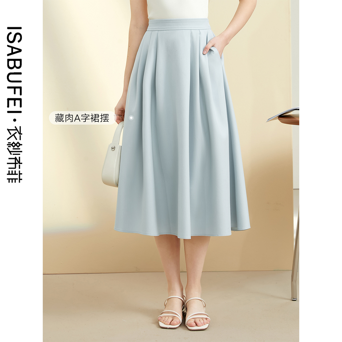 工装 a字中长款 半身裙 新款 白色高腰抗皱速干伞裙女春秋2025年夏季