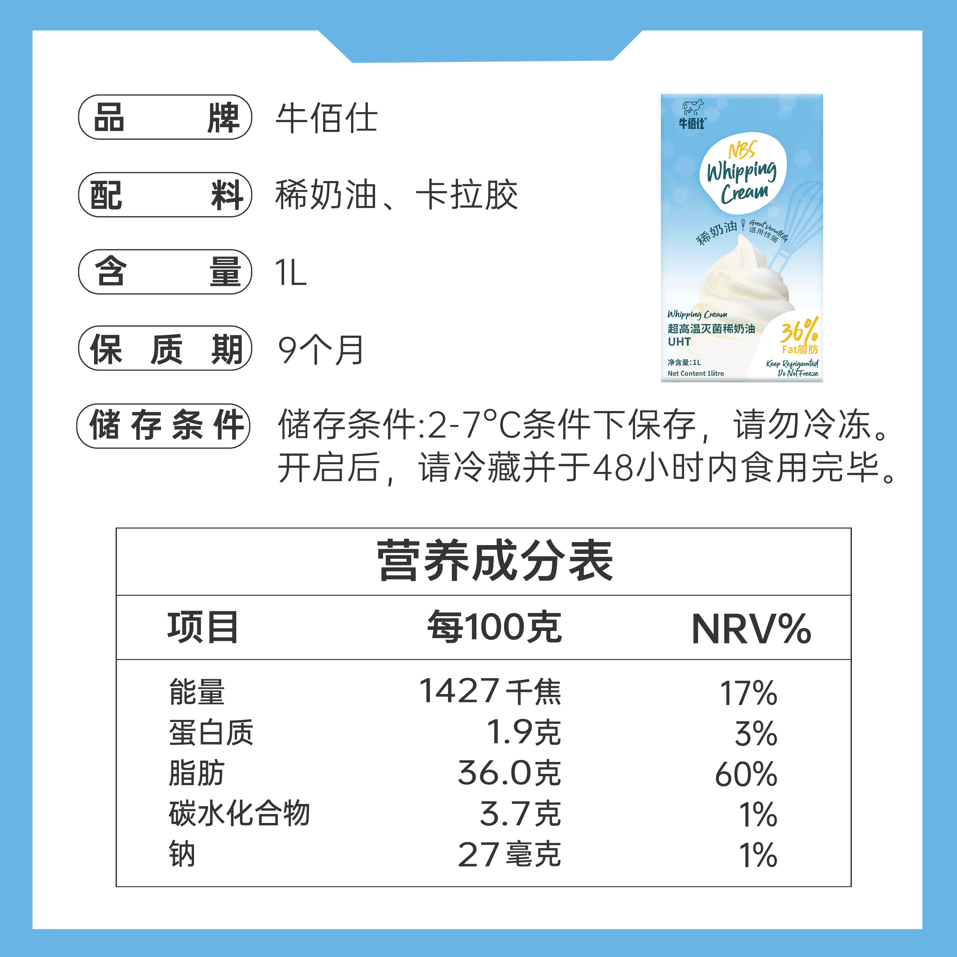 大拓淡奶油1L新西兰进口动物奶油蛋糕裱花蛋挞液专用烘焙商用原料
