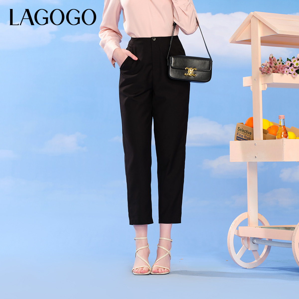高腰气质九分裤 新款 女拉谷谷夏季 LAGOGO黑色直筒宽松百搭休闲裤