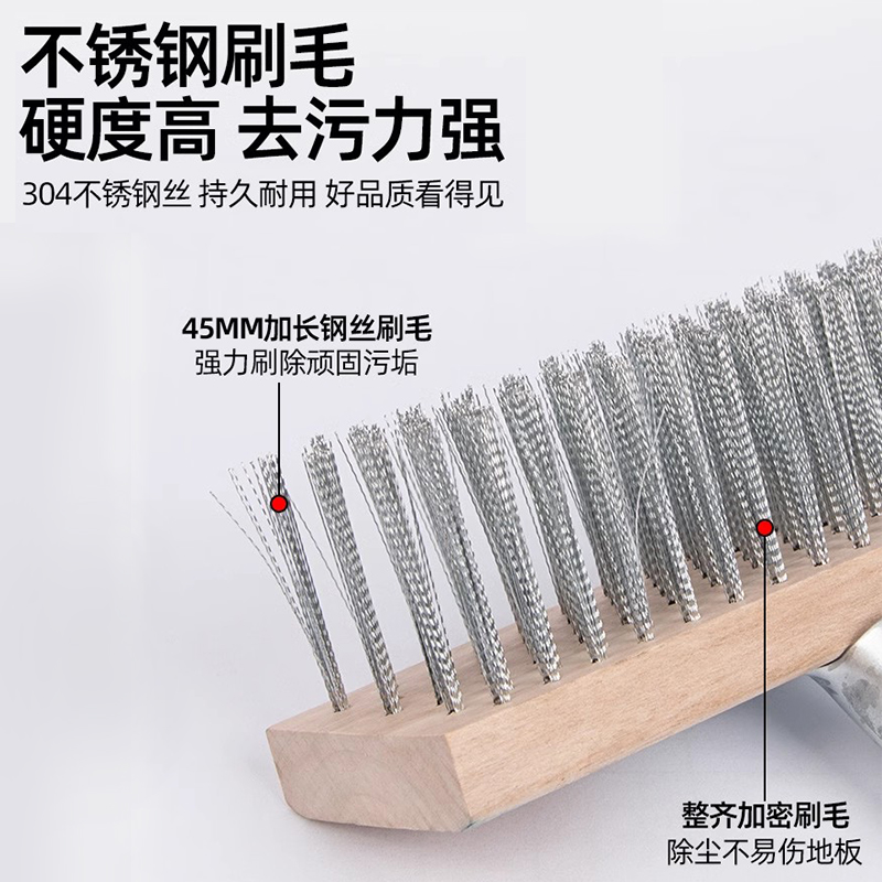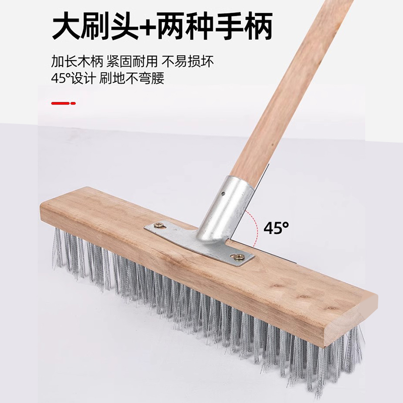 不锈钢钢丝刷刷地刷子长柄地刷青苔刷硬毛清洁刷洗地刷钢刷地板刷