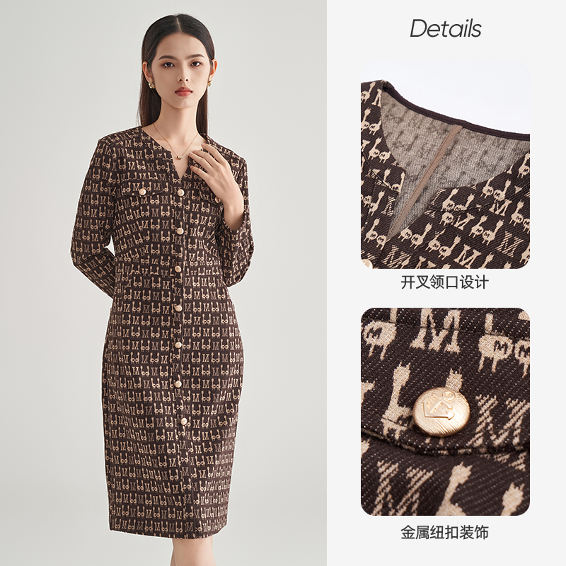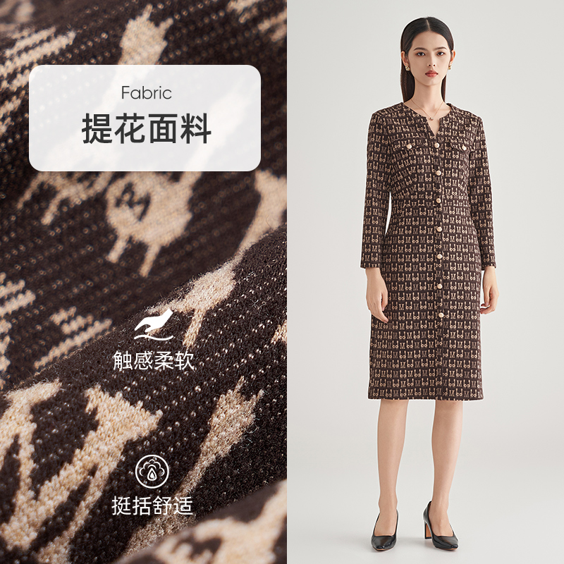 饰A字连身裙 含绵羊毛亮片拼接胸针装 Vero Moda连衣裙2025秋冬新款