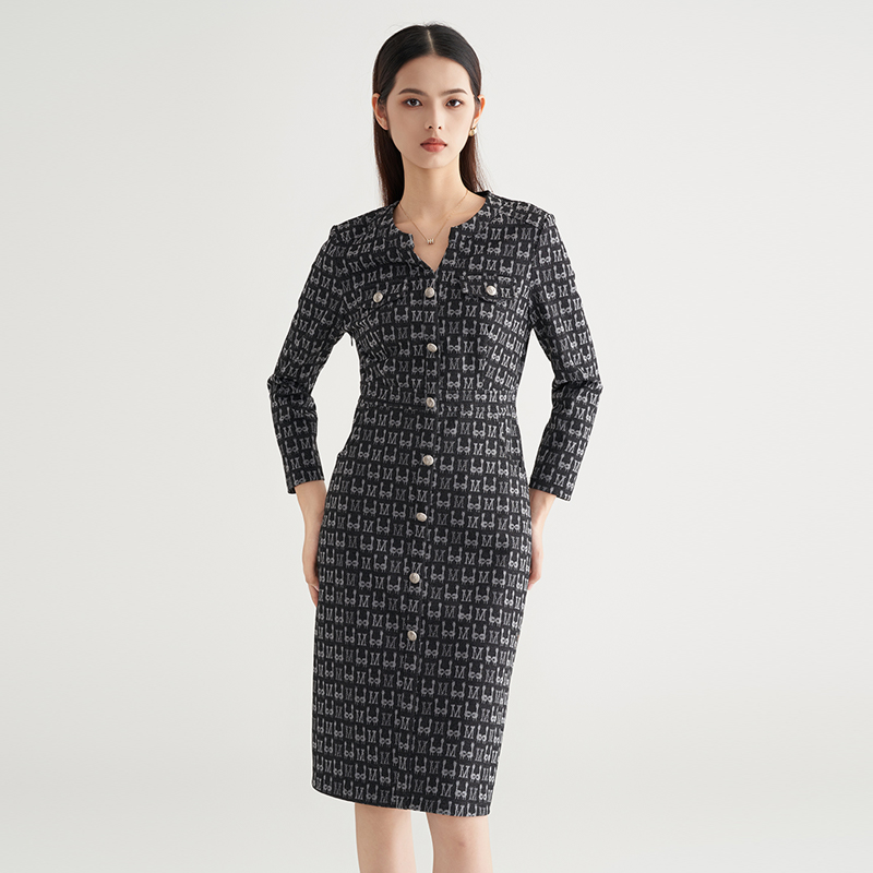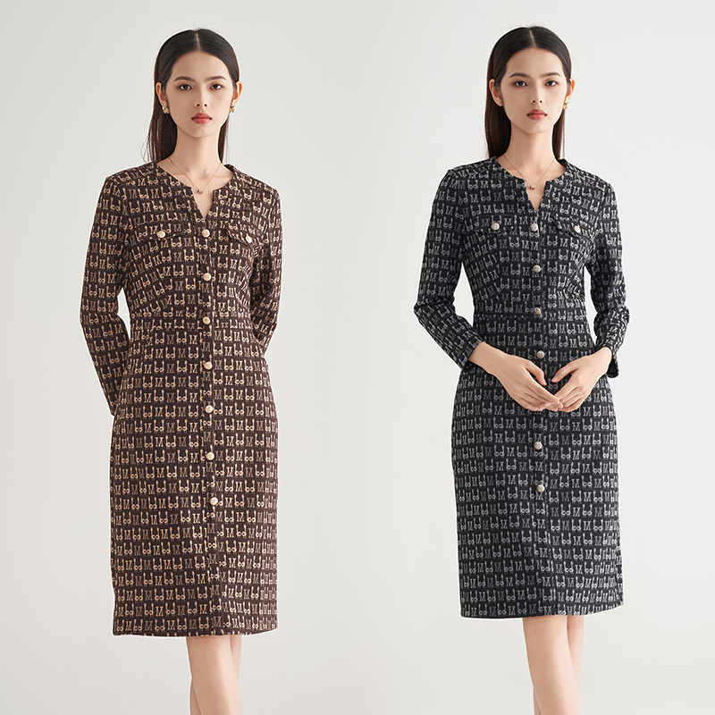 休闲风圆领长袖 新款 印花宽松中长裙1263590 连衣裙2025秋季 HM女装