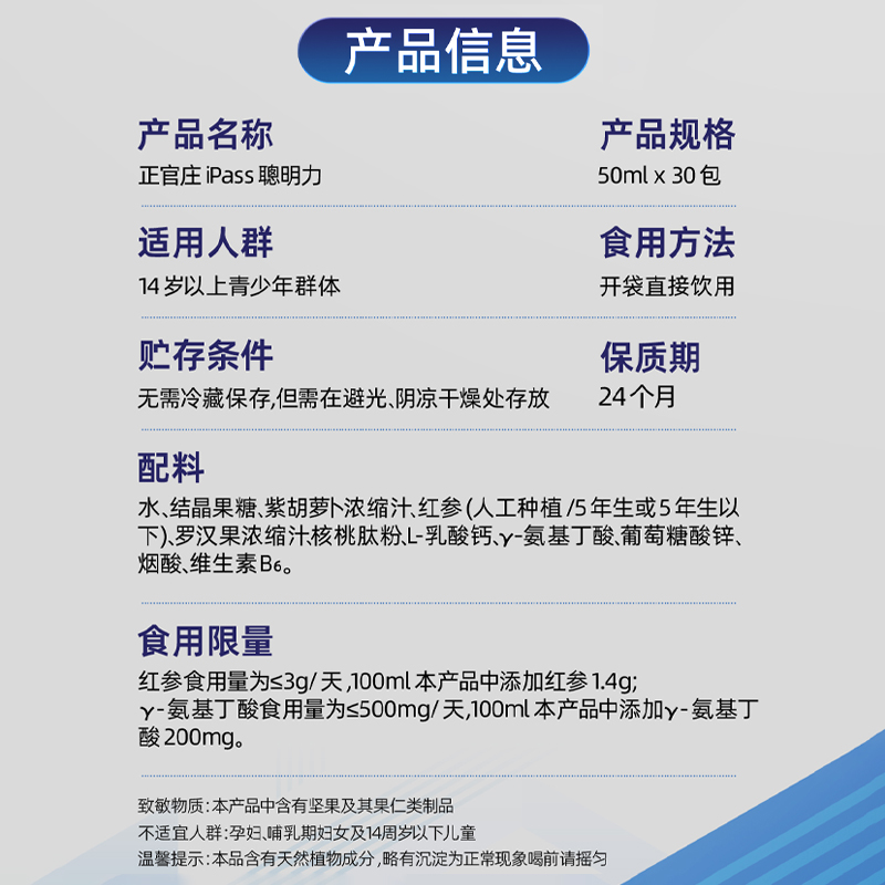 正官庄iPass聪明力学生红参饮初高中生学习青少年营养液 预售