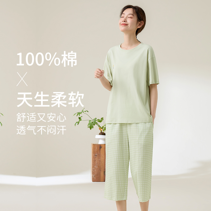 2025新款 套装 夏季 七分裤 休闲家居服可外穿 纯棉短袖 康妮雅睡衣女款