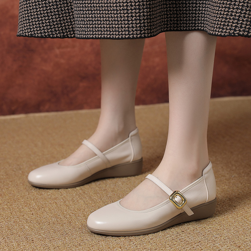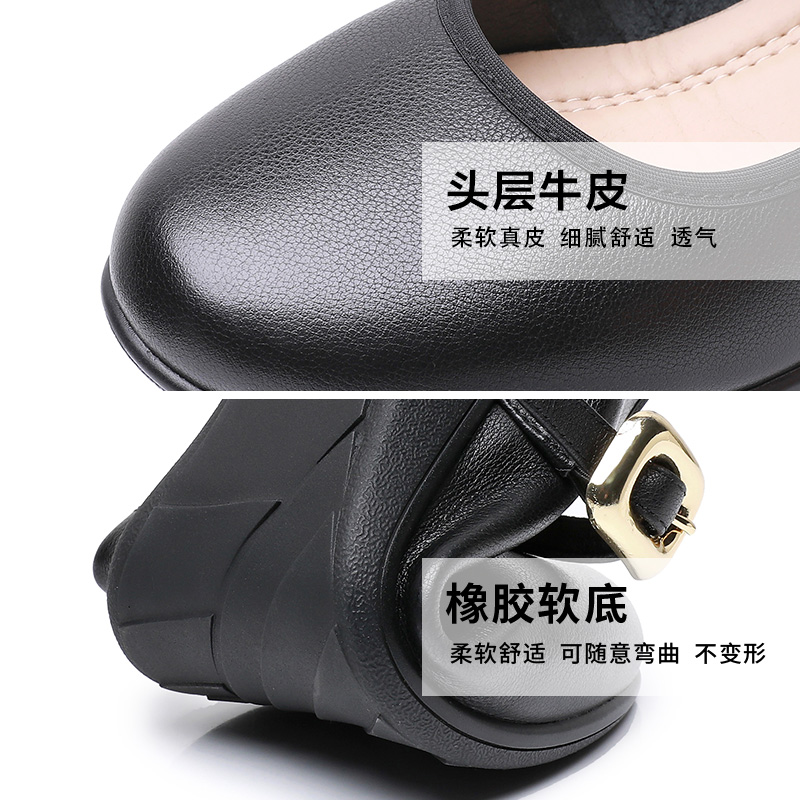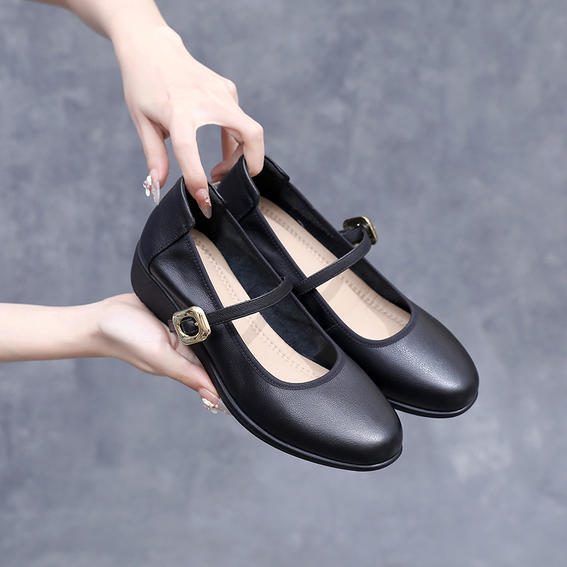 新款 玲峰妈妈鞋 41一43春季 女鞋 2025工作坡跟 头层牛皮一字扣大码