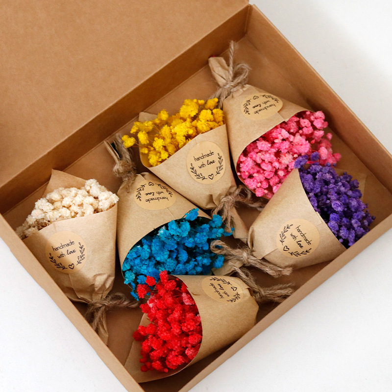 干花满天星迷你小花束盒装 伴手礼成品真花彩色永生花胸花