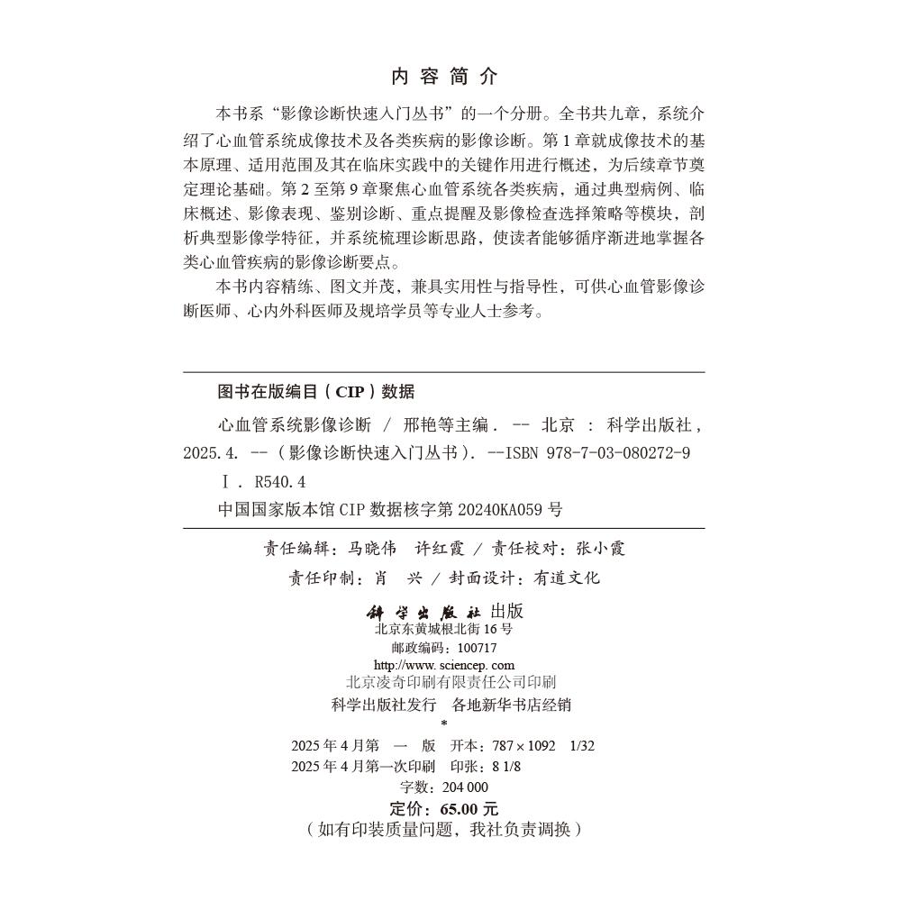 影像诊断快速入门丛书 祝因苏 邢艳 薛蕴菁 心血管系统成像技术及各类疾病影像诊断典型病例临床影像 李小虎 心血管系统影像诊断
