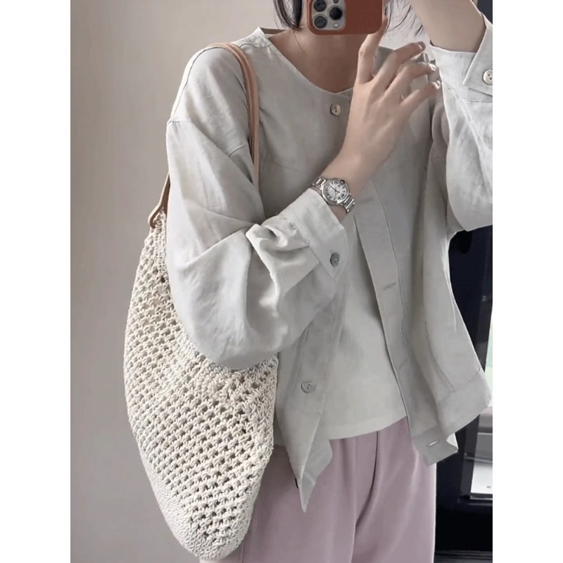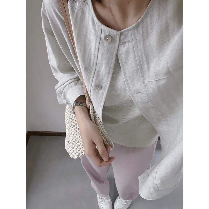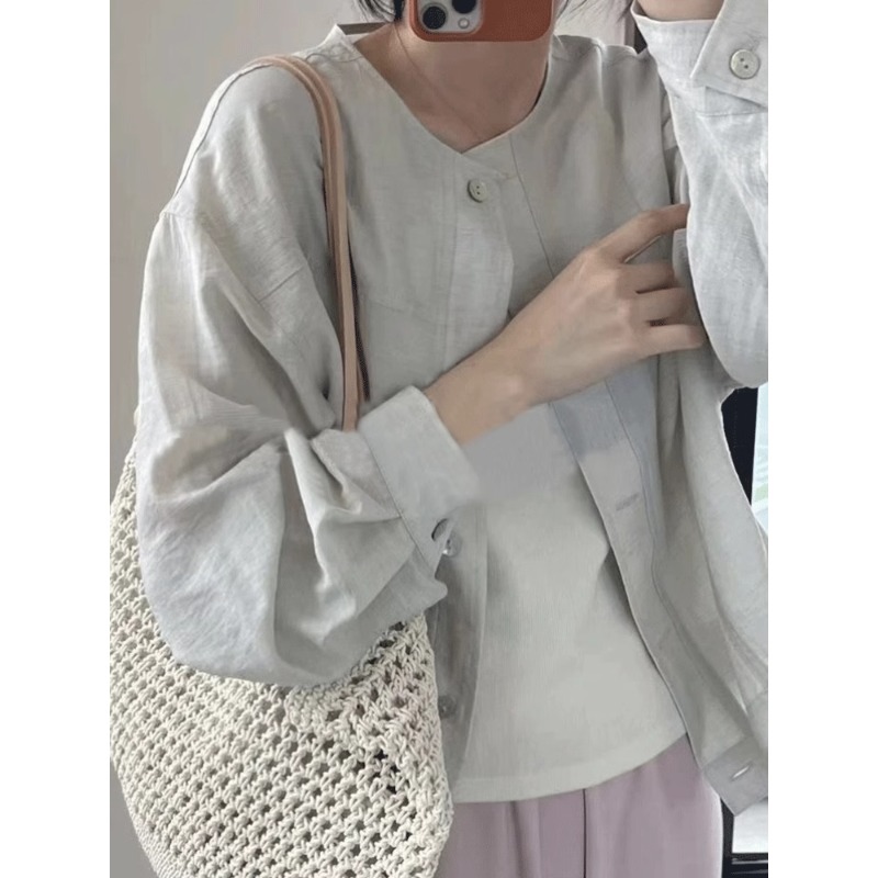 长袖 韩版 防晒苎麻短款 新款 宽松简约透气上衣潮 外套女2025夏季 薄款