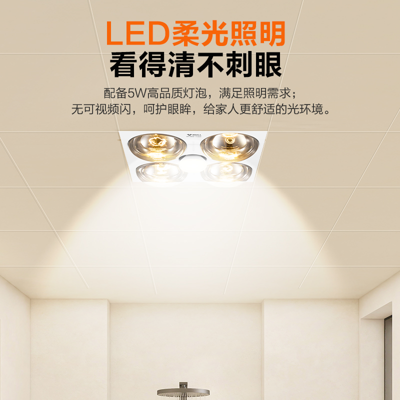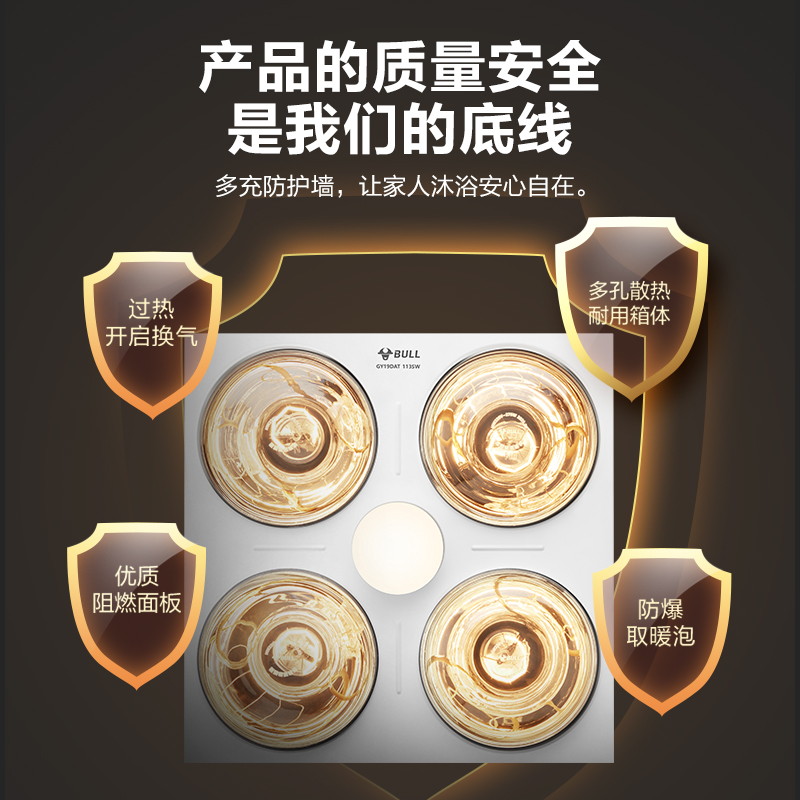 公牛集成吊顶四灯暖浴霸300x300嵌入式 卫生间 排气扇照明一体老式