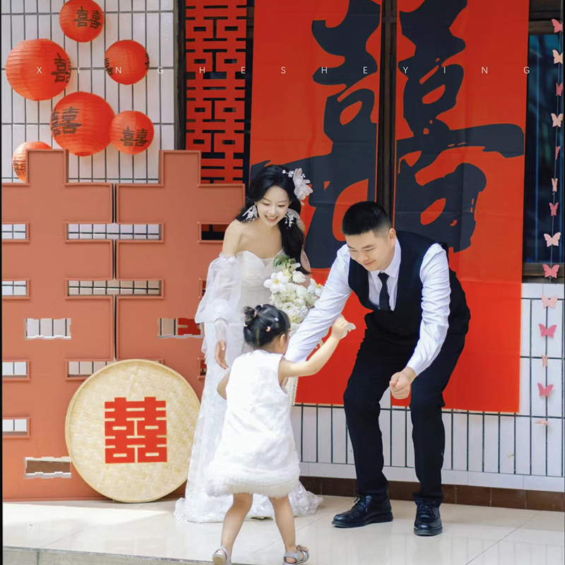 沙发客厅结婚装 酒店茶几男方女方婚礼新房长条喜字 饰婚房布置套装