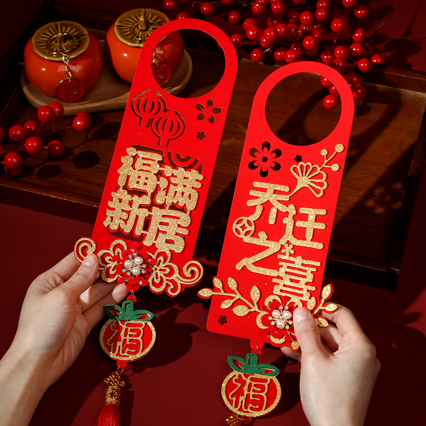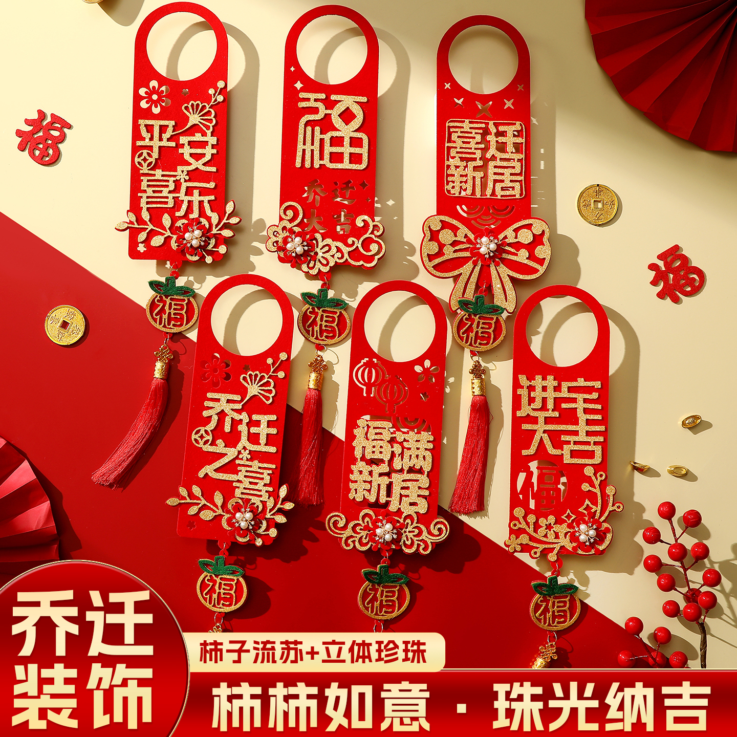 乔迁之喜装 用品 饰门把手柿柿如意挂件入户门新居布置搬家入宅仪式