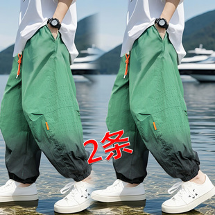 薄款 男童冰丝透气防蚊裤 大童男孩运动速干裤 渐变束脚裤 薄2025新款