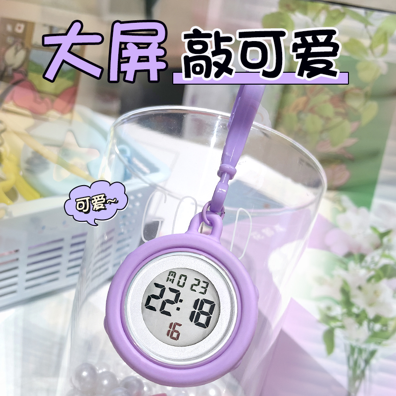 钥匙扣电子表女孩大数字夜光怀表学生手表迷你挂表考试用男儿童表