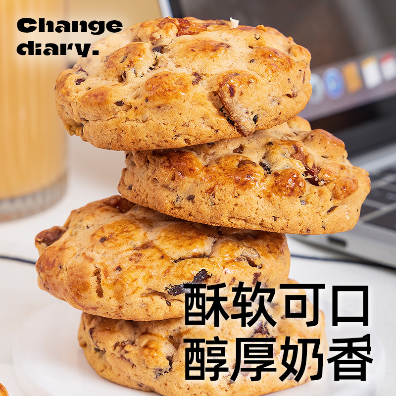 全麦红枣核桃司康曲奇饼干面包无糖精粗粮坚果营养代餐早餐零食品