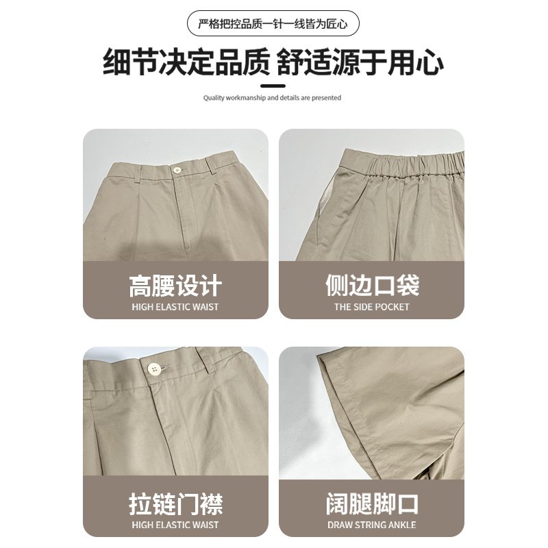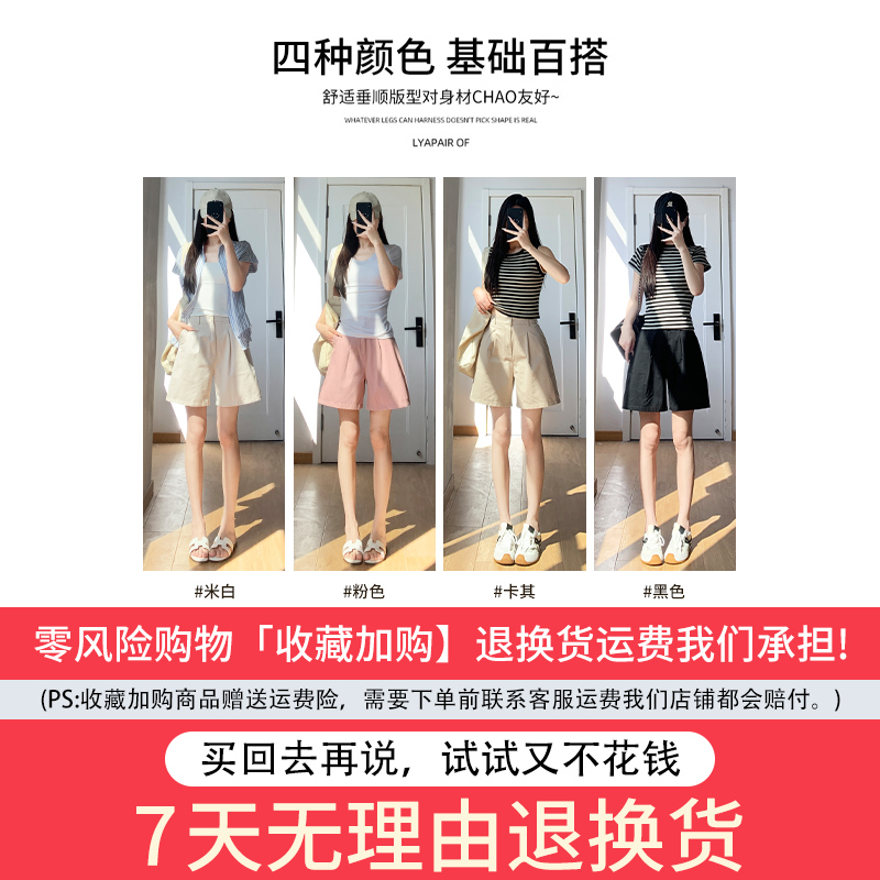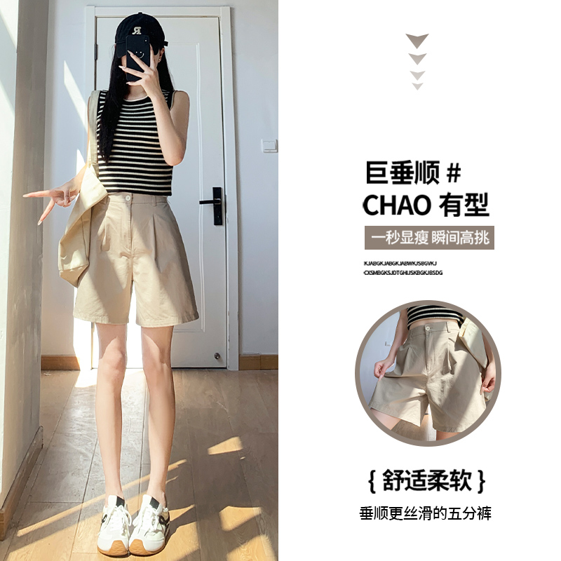 阔腿五分裤 卡其色运动短裤 直筒高腰休闲棉麻西装 2025年新款 女夏季