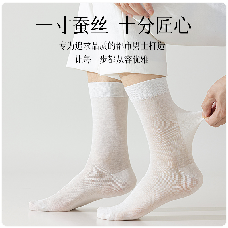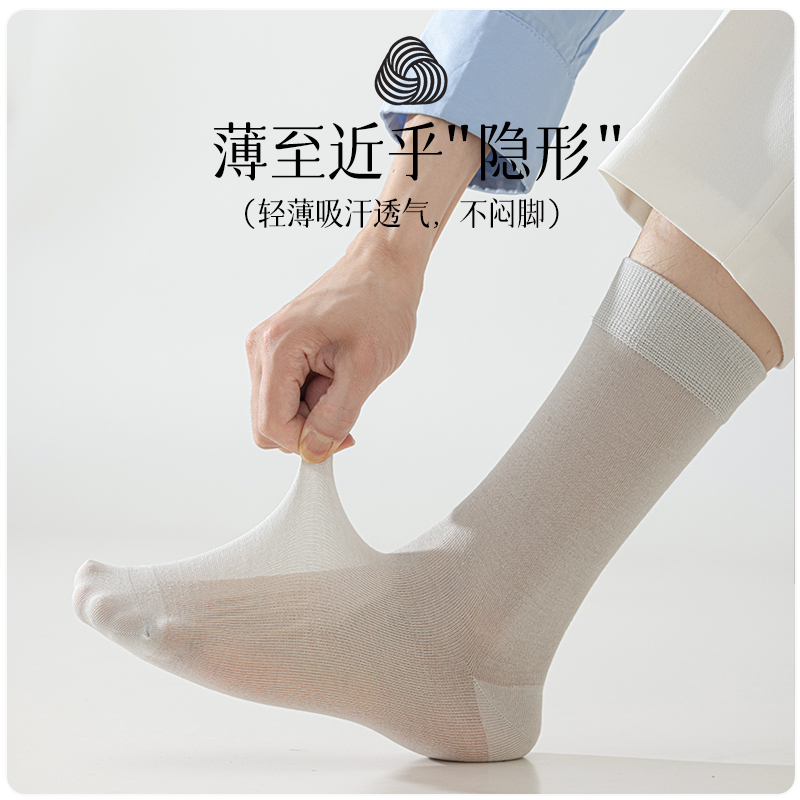 桑蚕丝长袜子男士 超薄商务黑色无骨夏天冰凉爽男生防臭中筒袜 夏季