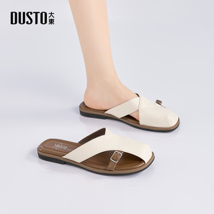 DYOWOZ 女增高3.3cm真皮厚底外穿 东园物作日系勃肯软木半包头拖鞋
