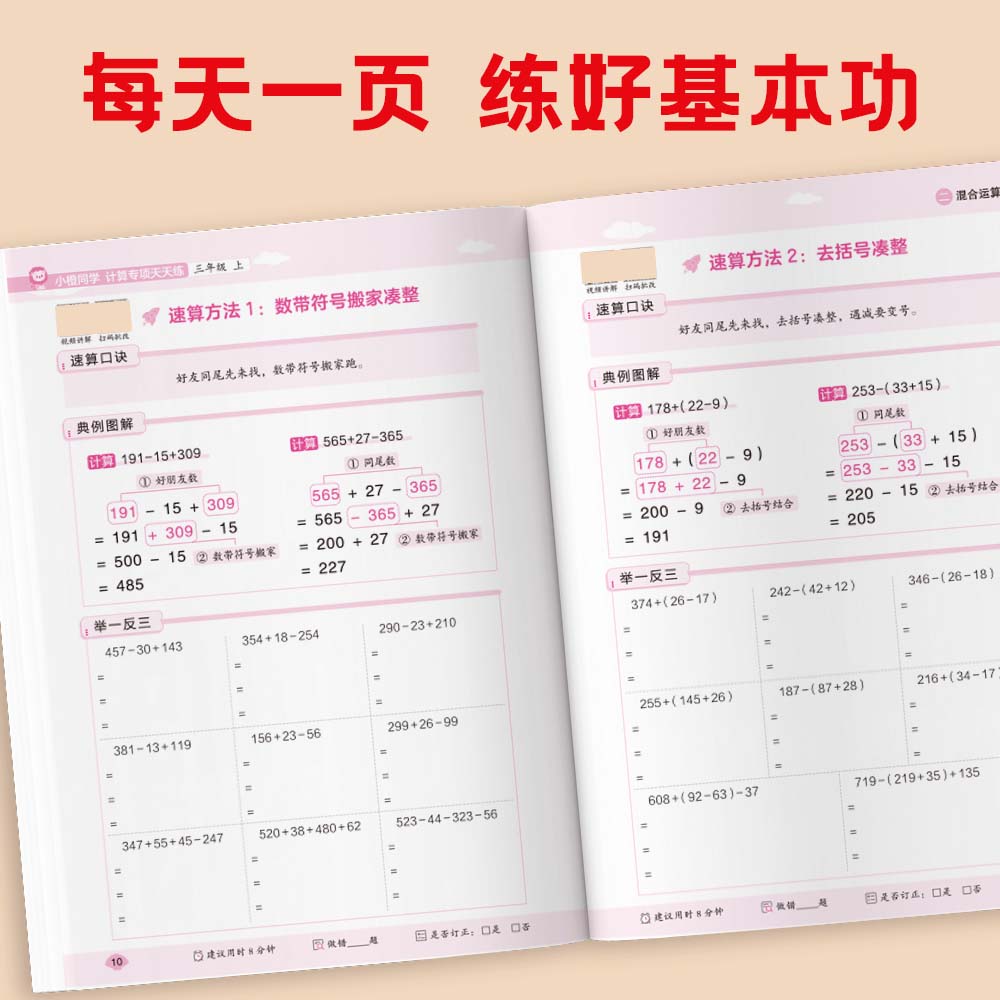 小橙同学语文数学英语专项同步训练练习册一二三四五六年级上册口算凑十法应用题看拼音写词语字词句积累阅读理解背记清单听力默写