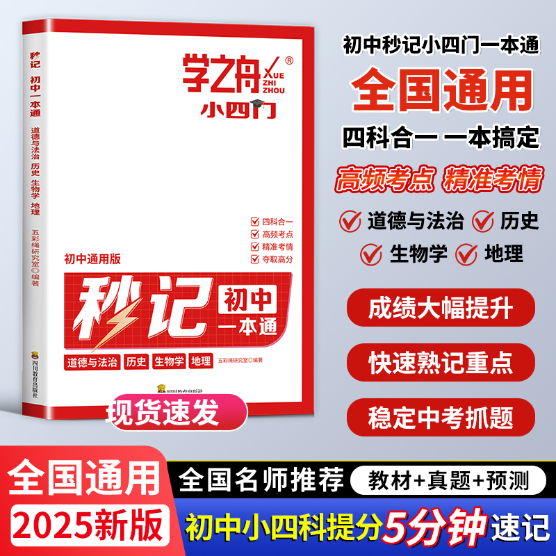 学之舟2025新版 政治历史地理生物初一七年级下册上册妙记妙计口诀备小升初启蒙书 秒记初中小四门一本通小四门必背知识点初中人教版