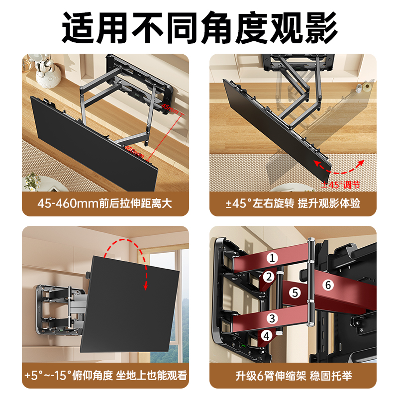 超薄电视机伸缩挂架折叠旋转支架85寸适用于创维索尼海信等通用