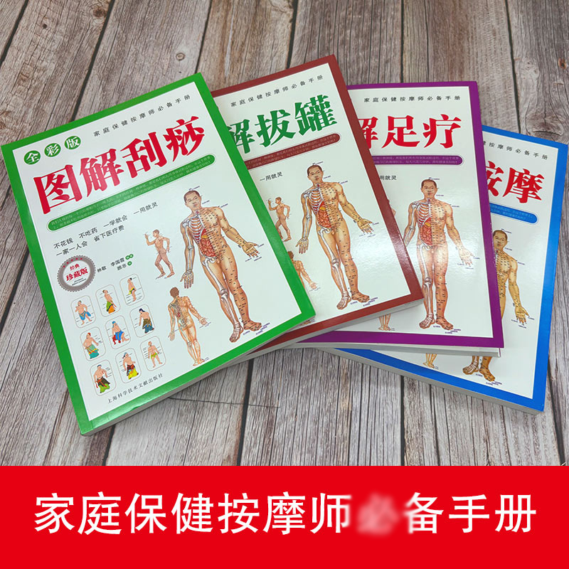 图解刮痧 图解足疗 零基础学中医养生书籍大全 全套4册 家庭养生保健手册 图解拔罐 人体经络穴位图 常见病防治对症疗法 图解按摩