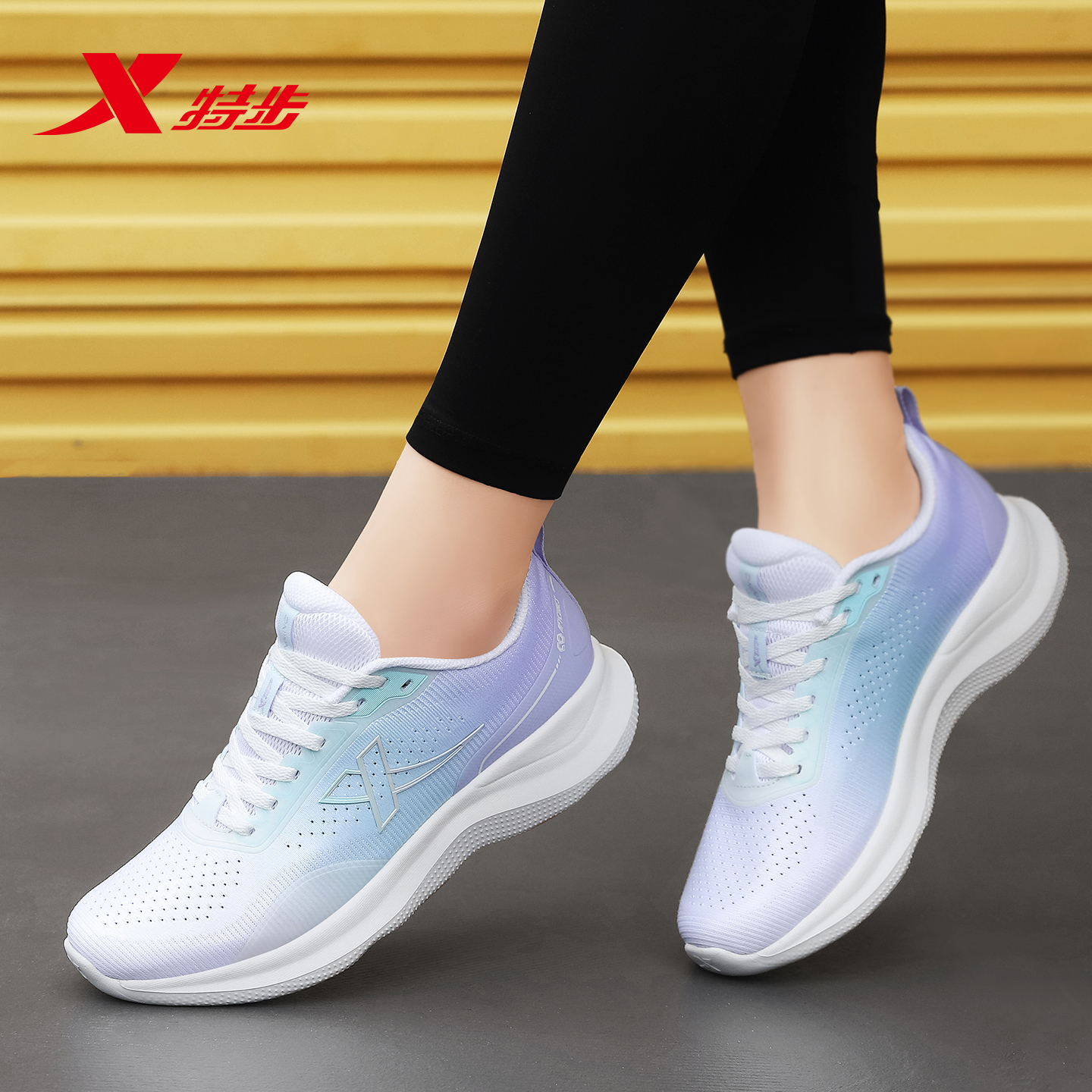 薄款 秋季 透气网面减震跑步鞋 女士休闲鞋 特步女鞋 子网鞋 柔立方跑鞋