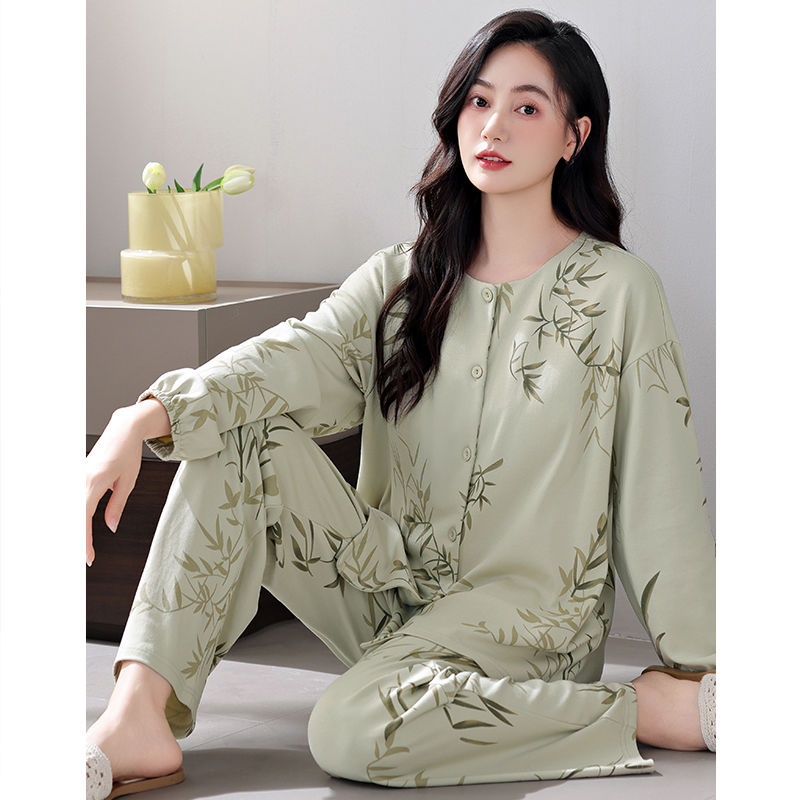 可外穿 宽松简约家居服套装 都市丽人100%纯棉睡衣女生2025新款 长袖