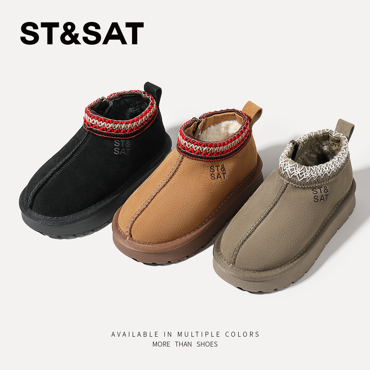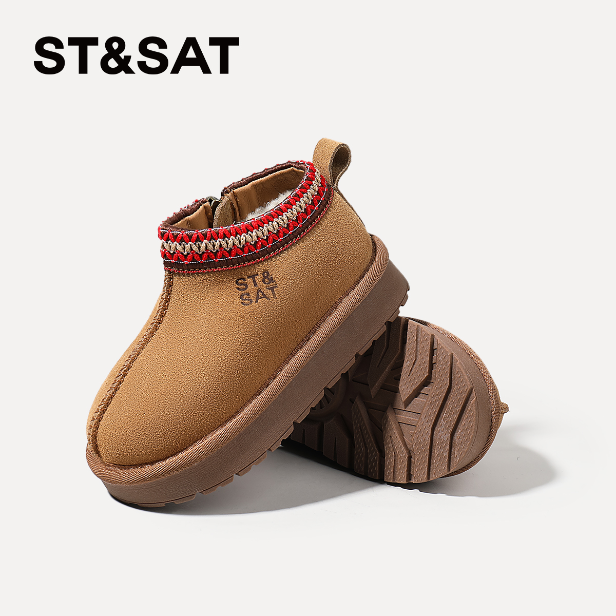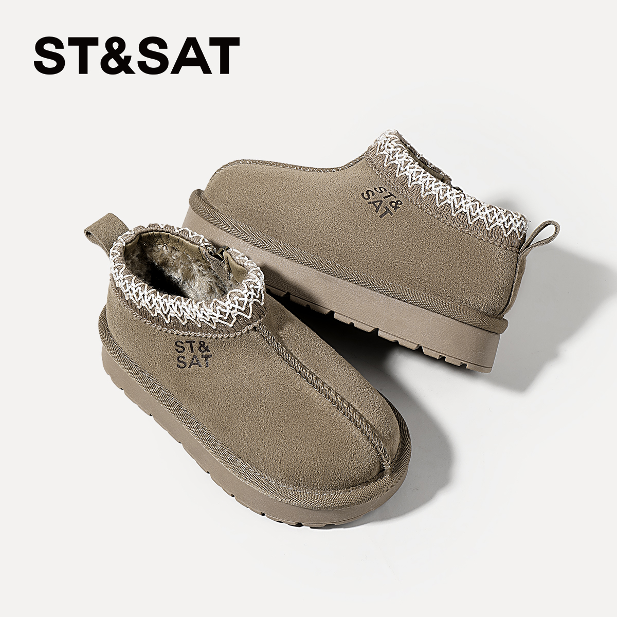 君妍同款 加绒保暖短靴D1K2DDD4 百丽小暖炉2代厚底雪地靴女棉鞋