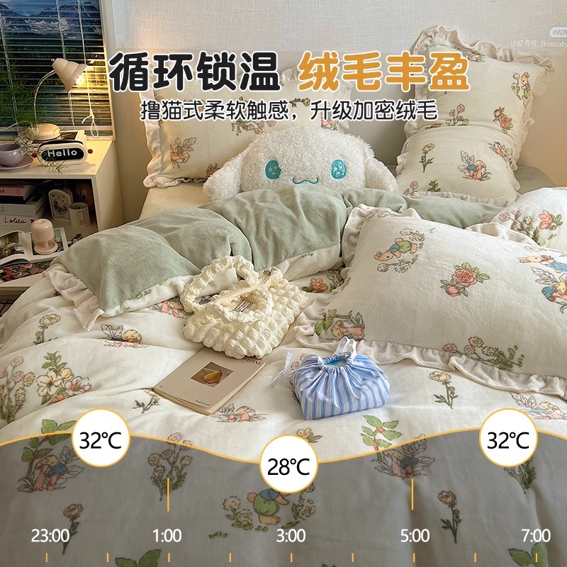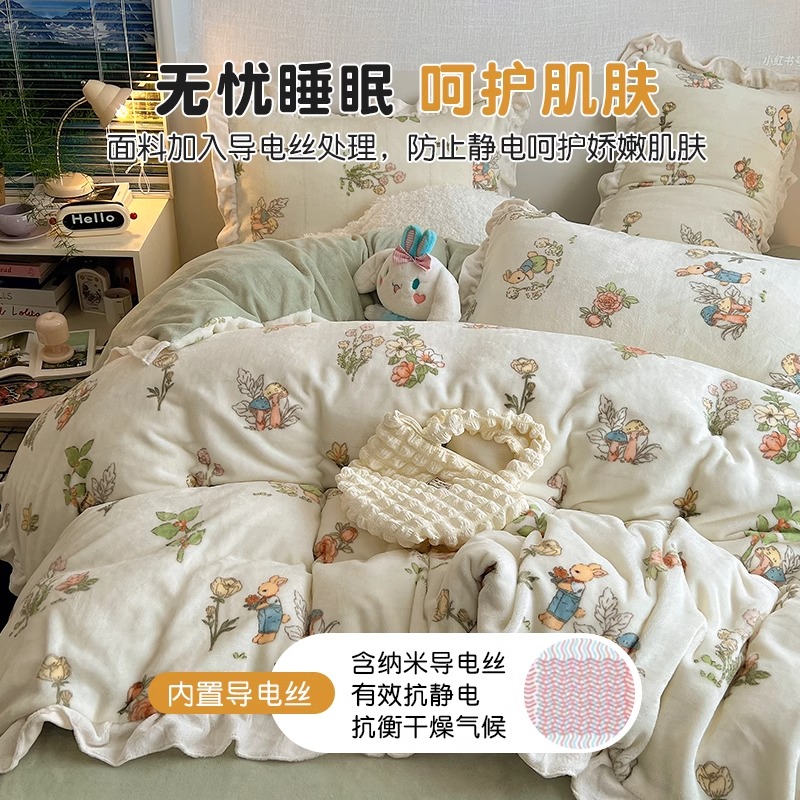 公主风牛奶绒四件套女生花边冬季 加绒加厚珊瑚绒被套ins床上用品