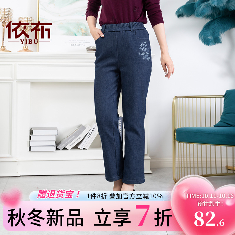子妈妈松紧腰长裤 宽松显瘦休闲裤 加绒加厚牛仔裤 依佈中老年人冬装