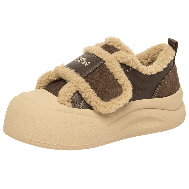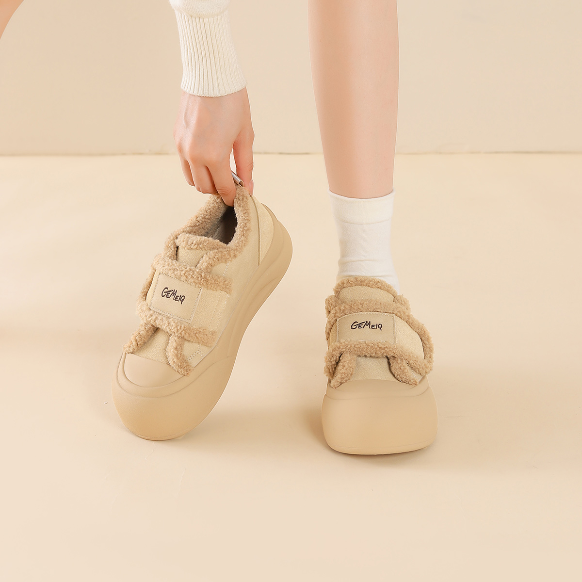 魔术贴一脚蹬毛毛鞋 戈美其面包鞋 秋冬加绒勃肯鞋 2024新款 女冬 女款