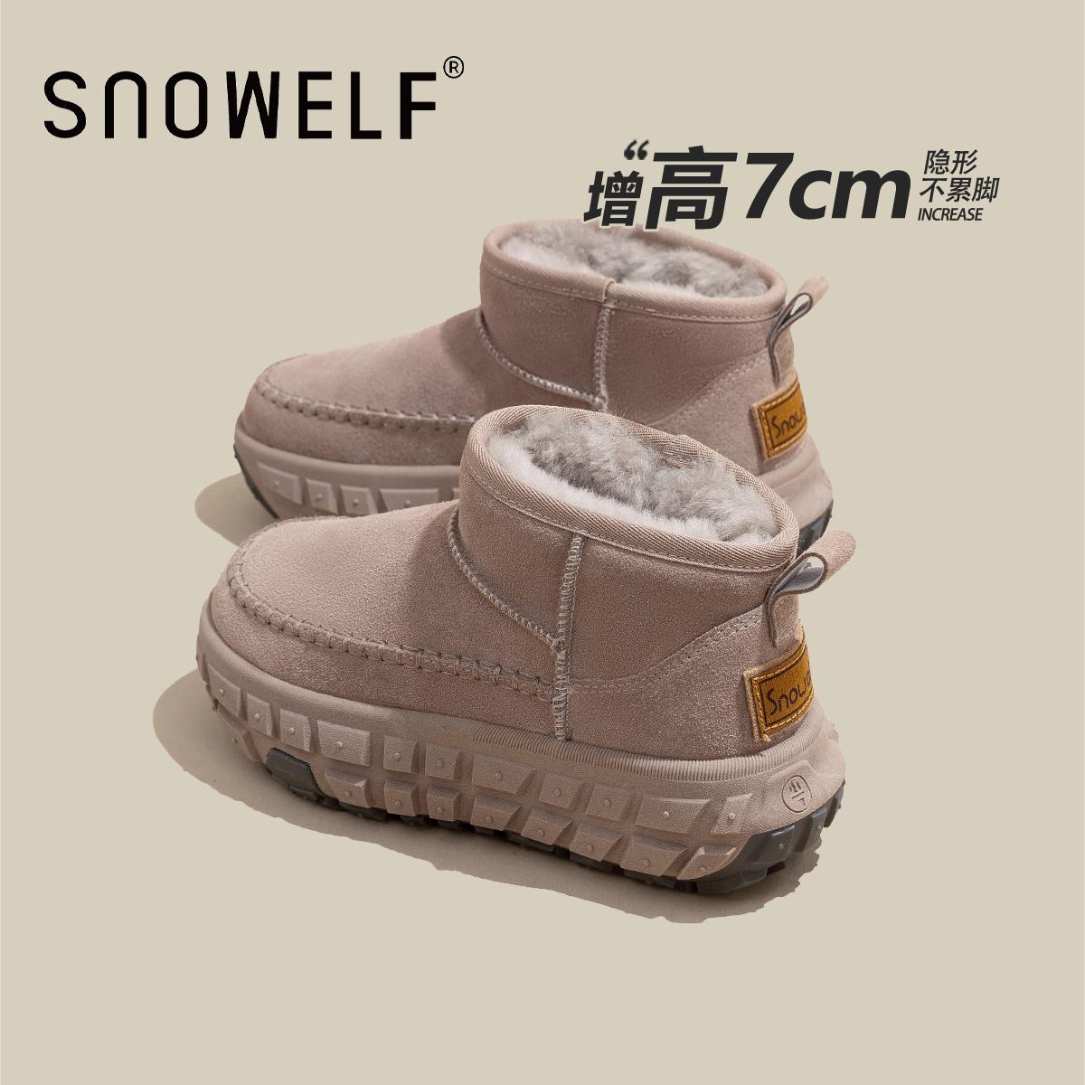 加绒加厚轮胎底增高女鞋 防滑保暖棉鞋 冬季 棕色厚底雪地靴2025新款