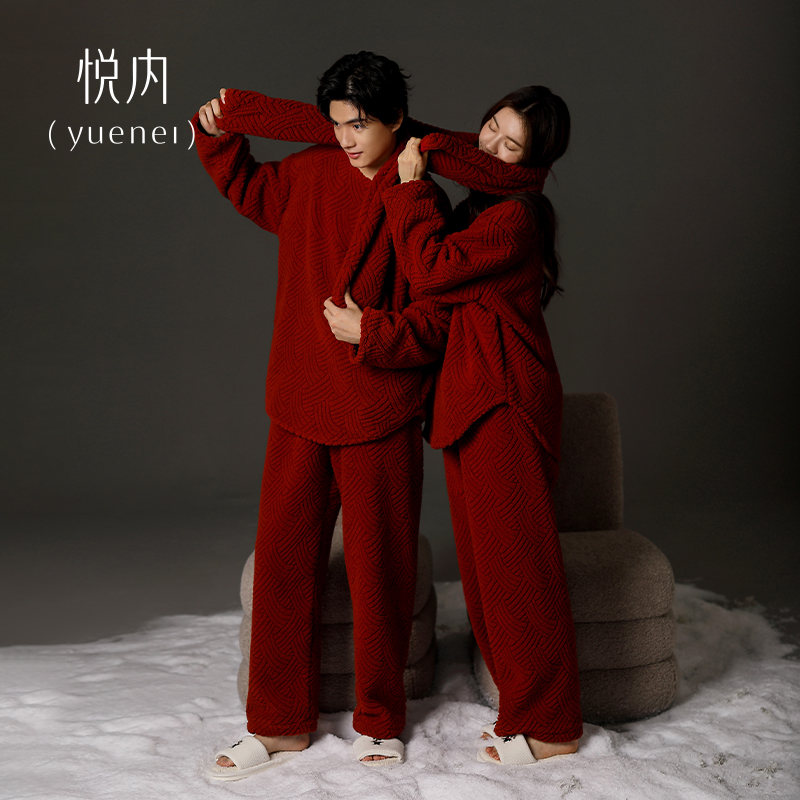 悦内红色睡衣结婚新婚情侣套装 珊瑚绒加厚家居服男女本命年 秋冬季