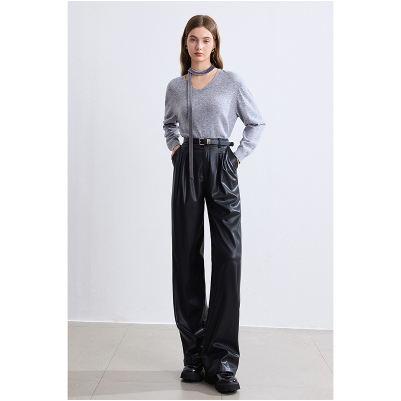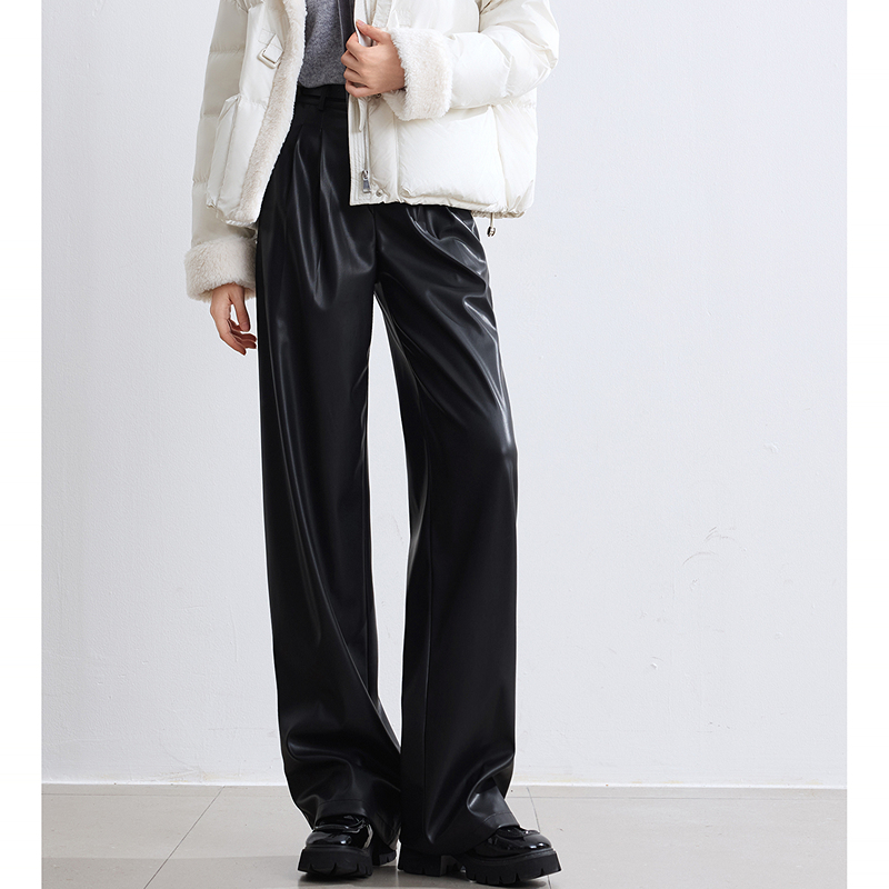 2025年冬季 女直筒裤 新款 简约长裤 betu百图时尚 休闲裤 减龄PU皮裤