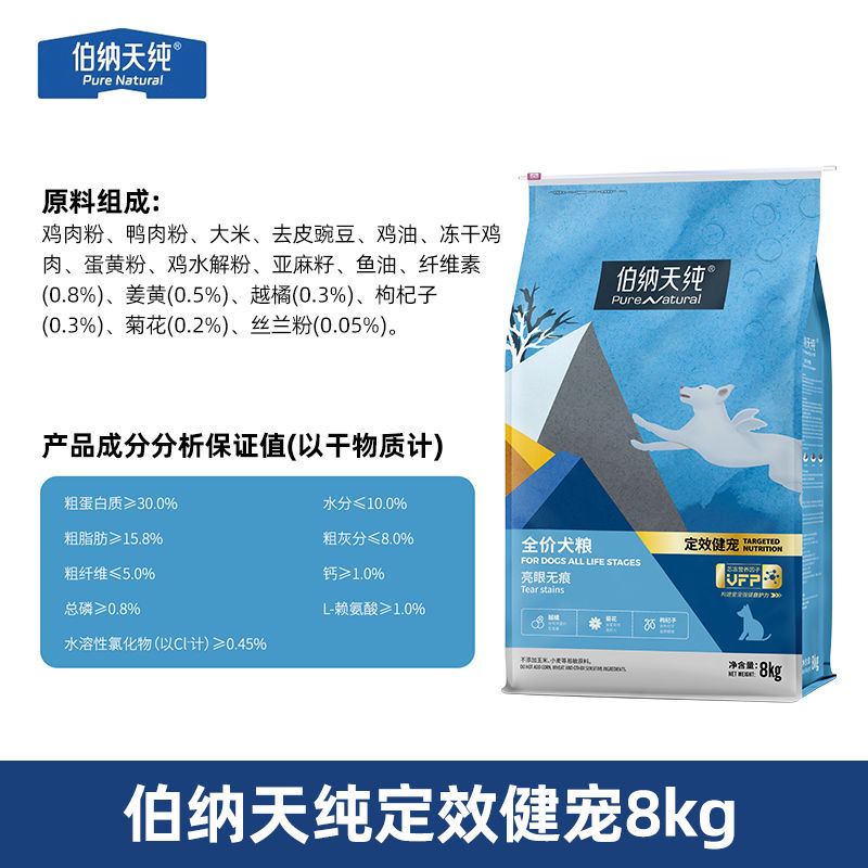 伯纳天纯狗粮定效健宠全阶段犬粮泰迪幼犬金毛成犬粮亮眼护胃8kg