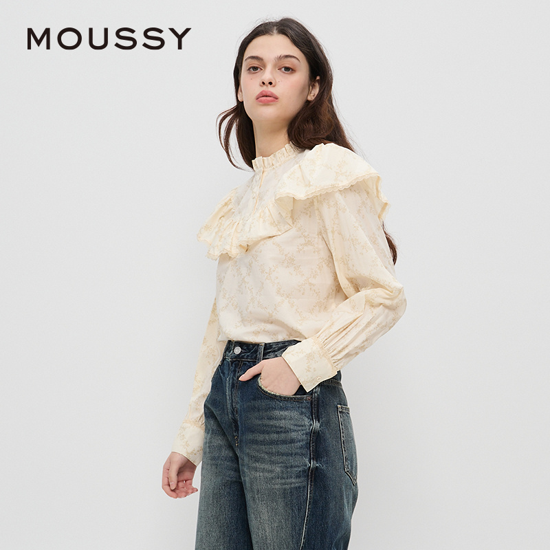 女028HAZ30 MOUSSY 复港风文艺碎花立领花边衬衫 新品 0921 秋季