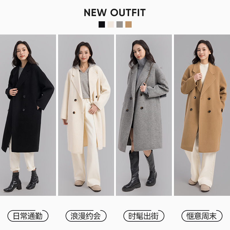 高个子双面呢加长款 高级感毛呢外套 羊绒大衣女2024秋冬过膝加长款