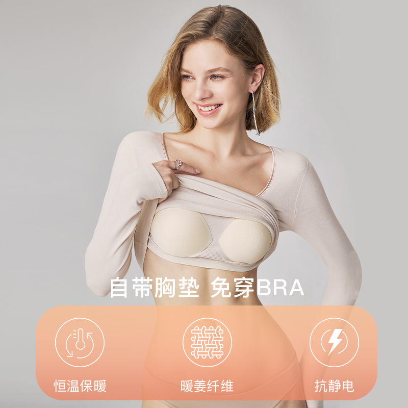 德绒保暖内衣女带胸垫秋冬季 内搭防静电肌底衣贴身文胸发热打底衫