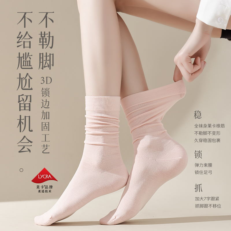 小腿袜子女春秋季 JK潮 过膝袜纯棉中筒袜微压显瘦无骨长筒长袜夏季