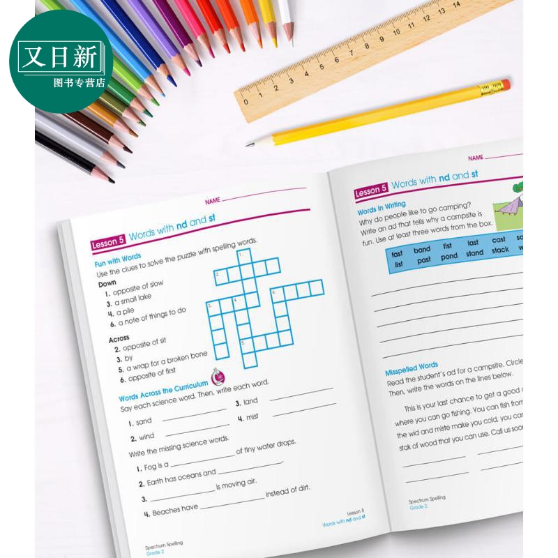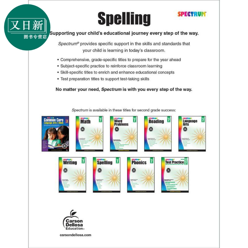 Grade 单词拼写系列 Spectrum 光谱练习册 进口 Carson 英文原版 2年级 又日新 Dellosa 美国CarsonDellosa Spelling