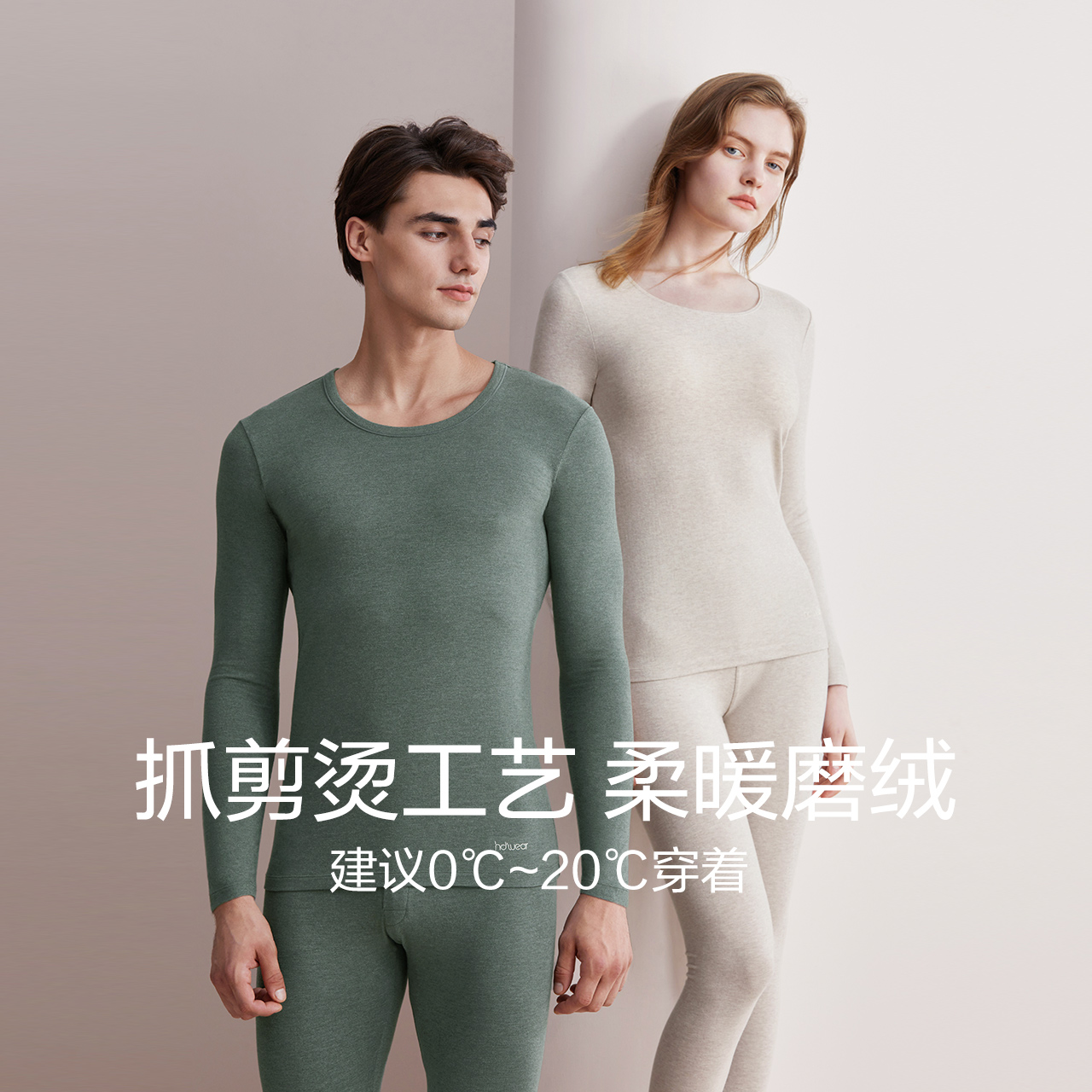 打底色纺磨毛保暖套装 内衣薄款 女冬情侣 男士 红豆绒棉花糖秋衣秋裤