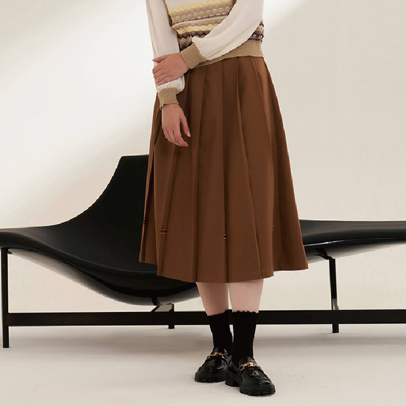 TeenieWeenie小熊女装 气质学院风简约刺绣百褶裙 半身裙2025秋新款