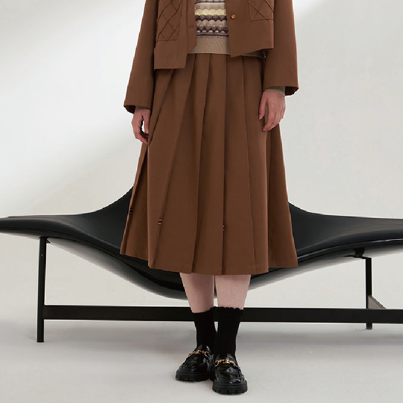 510457 木耳花边裙摆优雅美拉德半身裙子女装 三福长裙2025新款 冬季