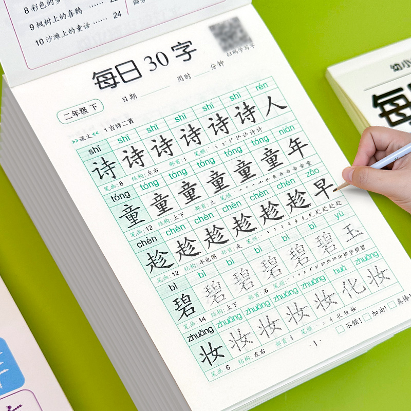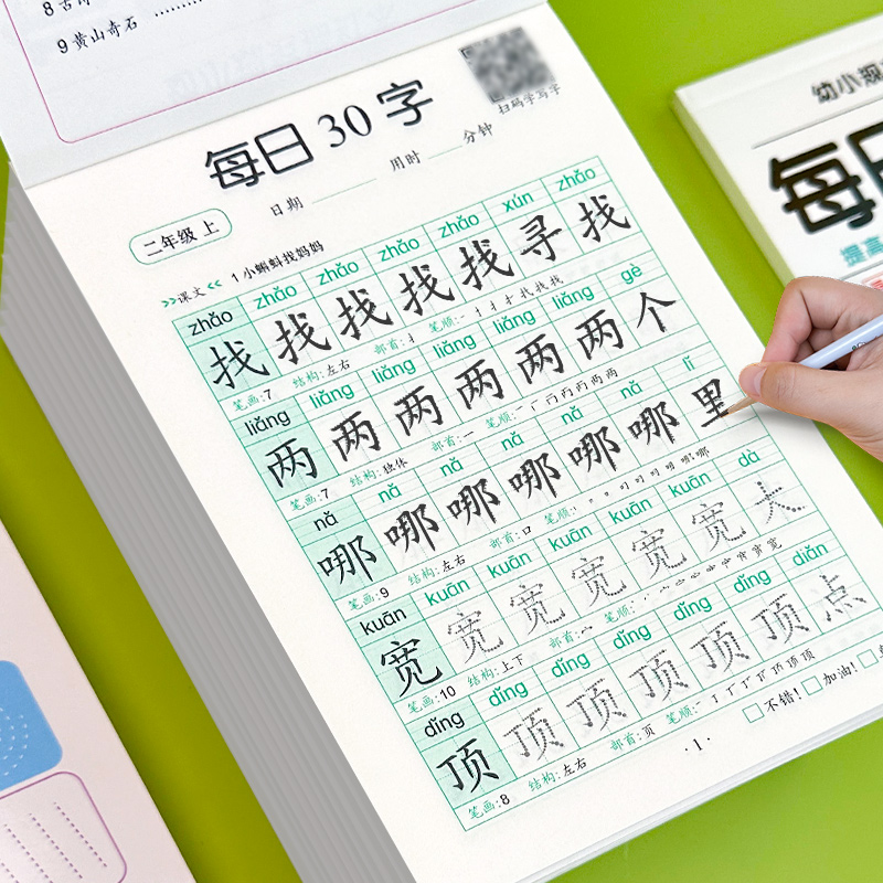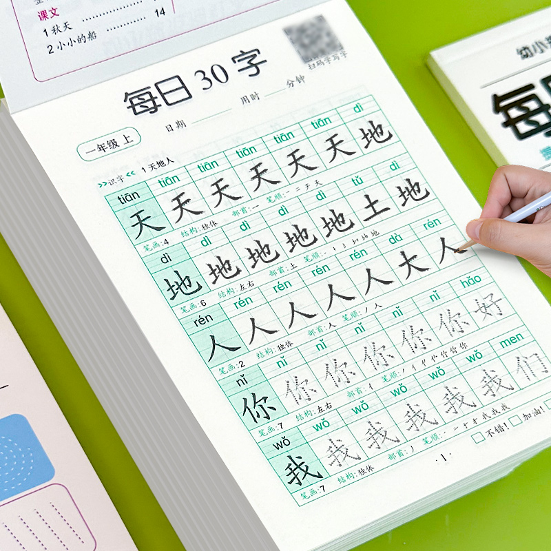一年级同步字帖每日30字小学生上册点阵控笔训练二年级练字帖一练人教版 语文笔画笔顺描红专用练字本硬笔书法楷书学前班书写部首
